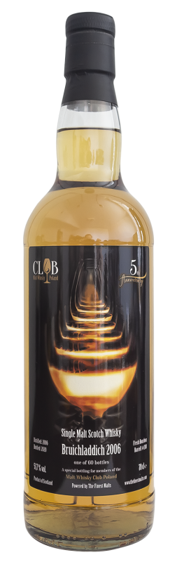Bruichladdich 2006 TFM #B0060 Z dumą możemy powiedzieć: nasza pierwsza whisky klubowa. Wydana z okazji 5 urodzin MWCP. Wybrana przez klubowiczów, w ramach panelu degustacyjnego online (z uwagi na pandemię Covid 19) spośród 4 pozycji. Jest to whisky 14-letnia, która dojrzewała w beczce fresh Bourbon barrel i została zabutelkowana w niezmienionej mocy 51,7%. Bottling obejmował 60 butelek i prawdopodobnie nie był to cały nakład uzyskany z beczki #280. więcej